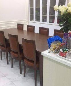 Anh Hùng chọn chất liệu giả da Cleo loại tốt bọc lại ghế ăn nhà mình, với chất da co giãn tốt chịu lực cao, dễ vệ sinh. Bảo hành 2 năm.