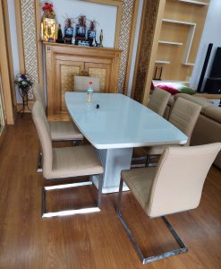 Bọc ghế ăn da nhà anh Nam ở Linh Đàm