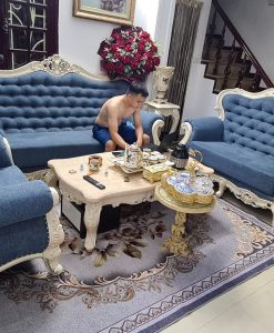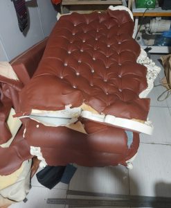 Nhà cô Hà ở bán đảo Linh đàm có bộ ghế sofa tân cổ điển một, hai, ba bằng da thật, nhưng do sử dụng lâu bề mặt đã bị rạn nứt hết nhìn không còn đẹp nữa, cô đang có ý định muốn bọc sang vải nỉ nhưng vẫn đắn đo không biết có phù hợp không, lên đã nhờ đến đơn vị sofa Mai Linh để tư vấn và bọc lại.