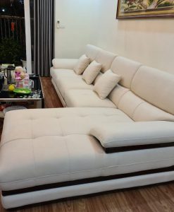 Ghế sofa nhà chị Diệp là dòng ghế sofa góc (L) loại lớn trước khi bọc là da thật, nhưng sử dụng vài năm thì phân da thật không phù hợp với khí hậu nước ta lên bị rạn nứt hết ghế, làm mất đi thẩm mỹ của phòng khách và chị cũng chán dùng chất liệu da muốn chuyển sang bọc lại bằng vải nỉ. Lên chị đã liên hệ tới sofa MaiLinh chúng tôi để được tư vấn và bọc lại ghế sofa.