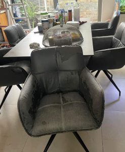 Ghế bàn ăn nhà anh Hưng sử dụng đã lâu, da ghế đã xuống cấp trầm trọng bề mặt da đã hoàn toàn bị nổ gây mất thẩm mỹ cho phòng khách, và làm khó chịu mỗi khi nhìn hay gây ảnh hưởng đến những bữa ăn. Chú đã quyết định bọc lại và liên hệ đến chúng tôi để được tư vấn và bọc lại.